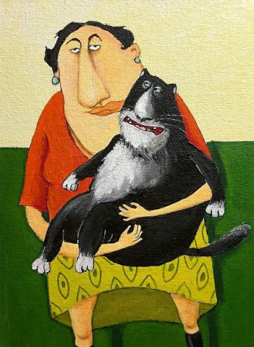 Я лет 15 назад попала на выставку Никаса Сафонова. Мне тогда очень понравились его очеловеченные коты, ранее я ничего подобного не видела.)))